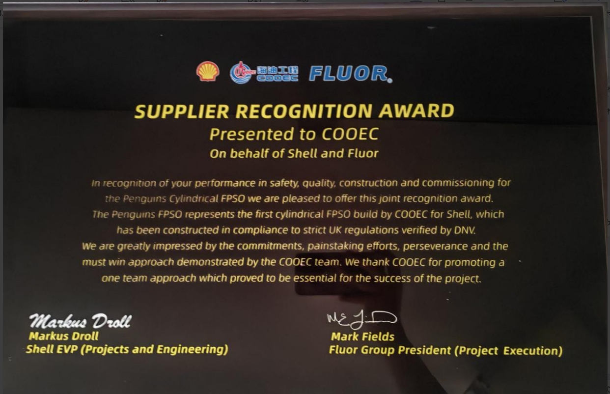 Offshore Oil Engineering Co., Ltd. is a listed company controlled by China National Offshore Oil Corporation. It is the only large general contracting company in China with capacities to undertake the design, procurement, construction, offshore installation, commissioning and maintenance of offshore oil and gas development projects, as well as the liquefied natural gas, offshore wind power, refining and chemical projects, etc. It is also one of the largest and the most competitive EPCI (engineering, procurement, construction and installation) contractors of offshore oil and gas projects in the Asia-Pacific region. The Company is headquartered in Binhai New Area, Tianjin. It was listed on Shanghai Stock Exchange (Stock Short Name: COOEC, Stock Symbol: 600583) on February 2002.