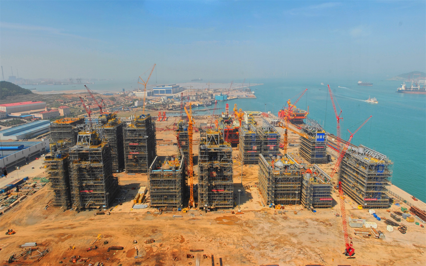 項目完工時間:2010年11月 項目簡介:鎳礦項目的業主是KONIAMBO Nickel SAS,采用模塊化工廠設計制造理念,海油工程承擔了其中17個、共重約4萬噸的模塊加設、采辦和陸地建造工作,最大模塊超過5000噸。項目全部在青島場地非滑道軟地基上建造,經過4個船次運往距青島8334公里的法屬New Caledonia島上進行組裝。 項目亮點:鎳礦項目首次大規模進行SPMT小車碼頭橫向裝船,該項目運輸到工程現場后一次性組裝連接成功。鎳礦項目首次利用DNV軟件進行了項目動態風險管理。